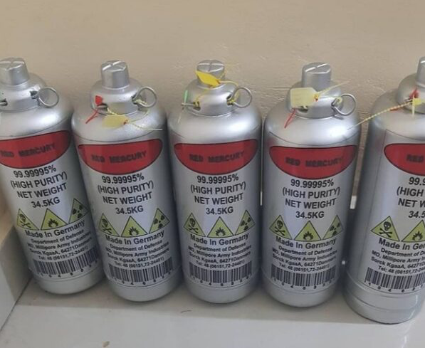 الزئبق السائل الأحمر 20/20 بنقاء 99.9999% الحد الأدنى للعينة 5 كجم = 35,500.00 دولار أمريكي 1. الزئبق الأحمر 20/20 = 2,500.00 دولار أمريكي/جرام 2. الزئبق الأحمر 27/27 = 1,500.00 دولار أمريكي/جرام 3. زجاجة/قارورة/أسطوانة 34.5 كجم من الزئبق الأحمر = 250,000.00 دولار أمريكي